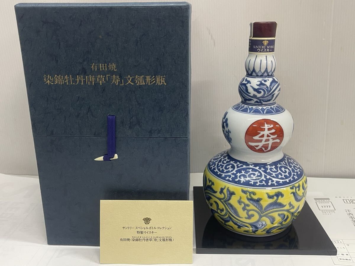 > 【古酒】未開栓 SUNTORY サントリー 20年 ウイスキー 有田焼 染錦牡丹唐草「寿」文瓢形瓶14