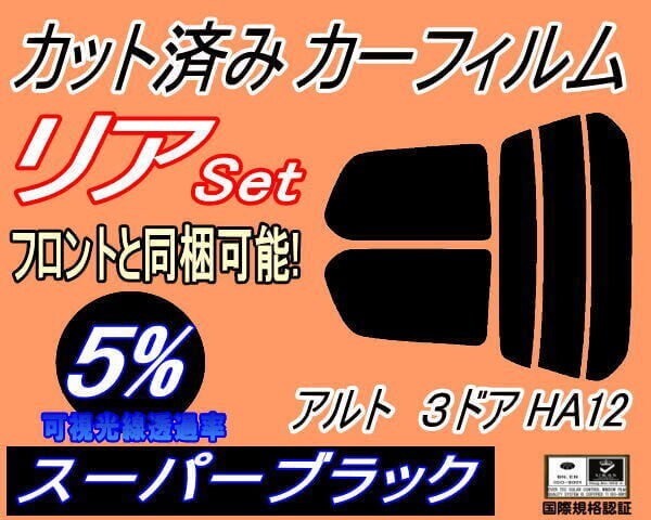 - カーフィルム スーパーブラック カット済み リアセット アルト 3ドア HA12 (s) スモーク HA22S HA23S HA12V HA12S 3ドア用 スズキ