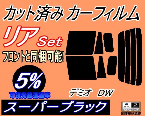 - カーフィルム スーパーブラック カット済み リアセット デミオ DW (s) スモーク DW3W DW5W マツダ ガラスフィルム