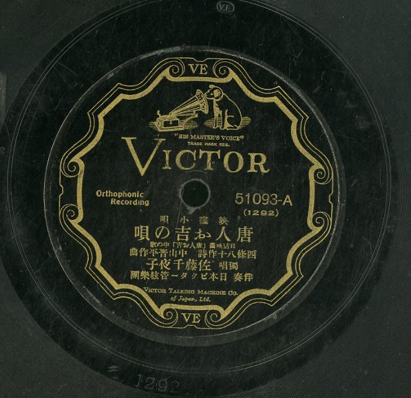 K00032274/SP1枚組/佐藤千夜子/二三吉「唐人お吉の唄/唐人お吉の小唄」