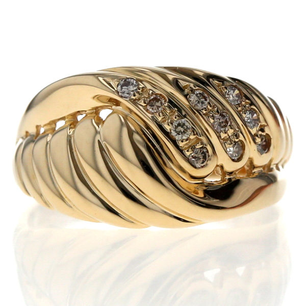 > K18YG イエローゴールド リング ダイヤモンド 0.10ct ライン ウェーブ デザイン 指輪 11号 【新品仕上済】【zz】【中古】