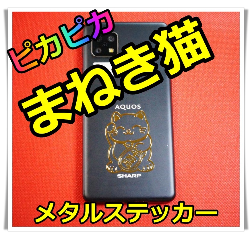- 【送料無料】まねき猫 ステッカー メタル 金運 幸運 開運 ネコ ゴールド スマホ レジン
