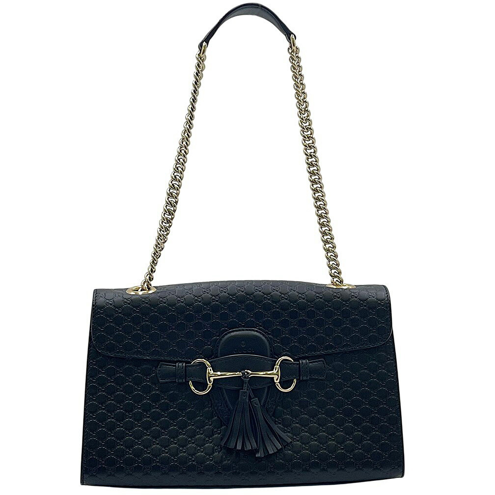 - 極美品 グッチ ショルダーバッグ GUCCI 449635 マイクログッチシマ ホースビット エミリー ミディアム ブラック 黒 レディース