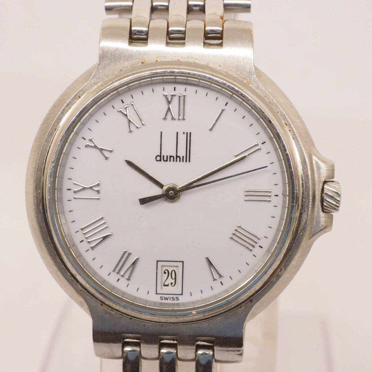 - 【動作OK】ダンヒル エリート デイト クォーツ 腕時計 ホワイト文字盤 純正ブレス DUNHILL