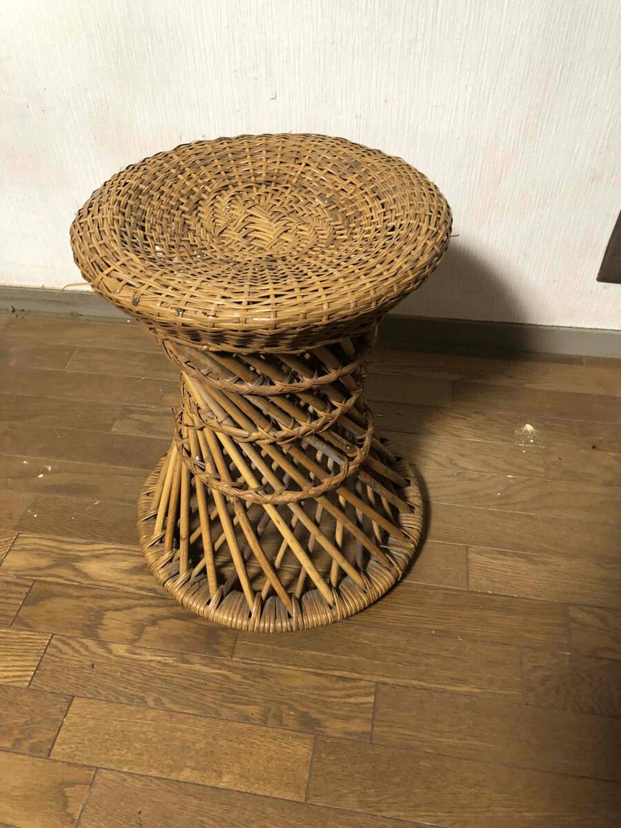 - アンティーク 籐家具 丸椅子 サイドテーブル アジアン エスニック ラタン 籐 スツール 螺旋デザイン 捻り編み レトロ ヴィンテージ 椅子