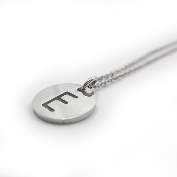 - E ステンレス アルファベット イニシャル ネックレス ペンダント チェーン太さ 約1.9mm全長約43cm *擦り傷あり