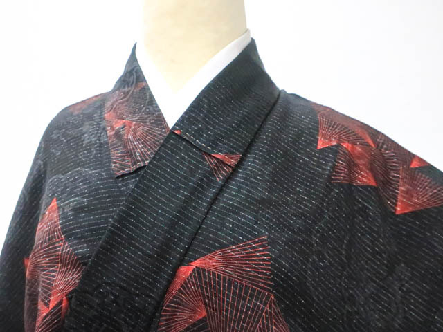> 《古美術京松》【着物】アンティーク 小紋 銀糸 幾何学文 身丈約149.5cm 裄丈約60cm kyo7z05-423