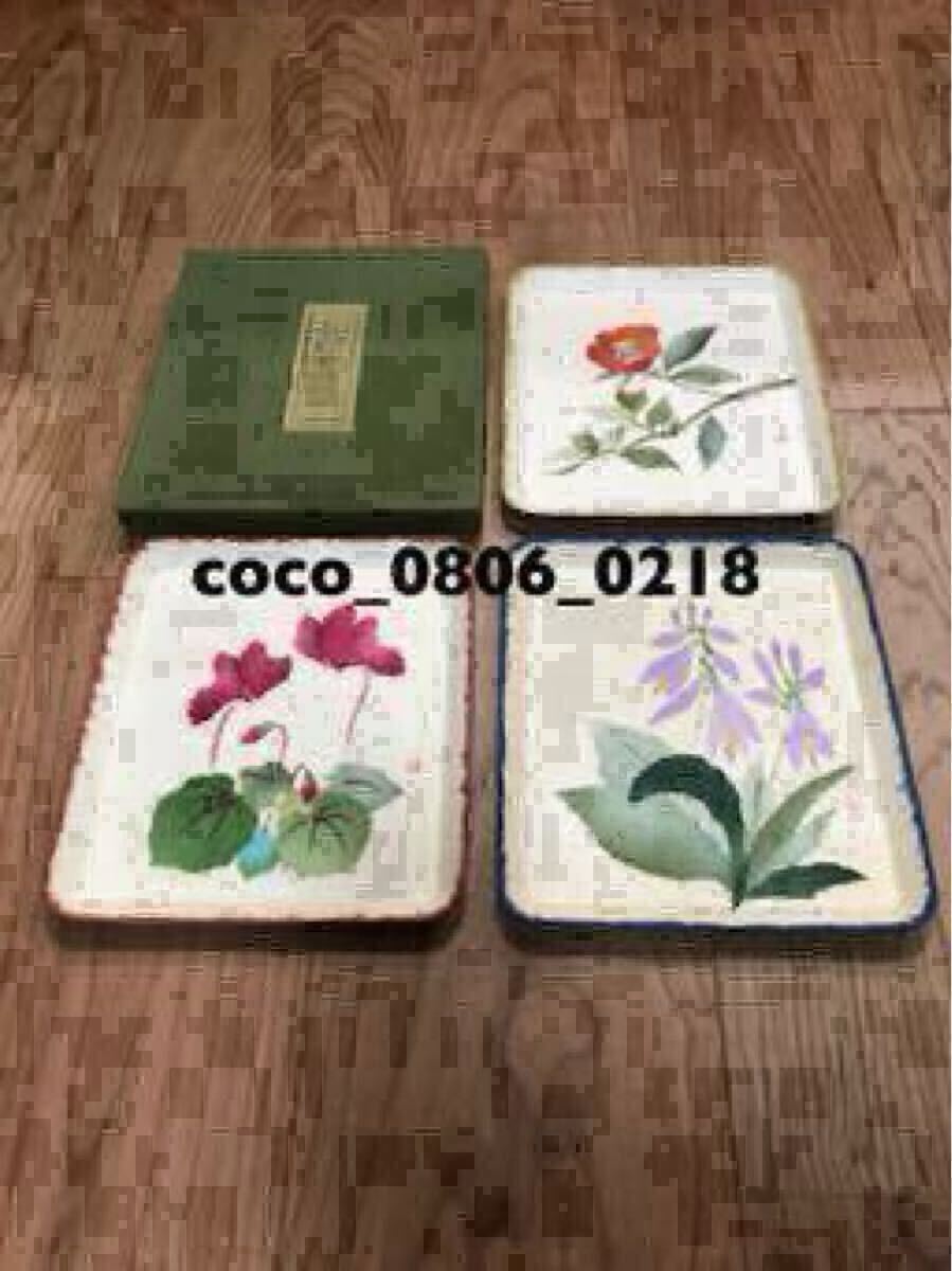 - ♪手すき和紙 工芸皿 角皿シクラメン 椿 3枚セット【未使用】長期保管 中古品扱い 経年劣化あり NHK