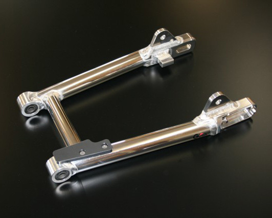 高剛性アルミ7N01材パイプを使用し、さらに純正よりもパイプ径を太く(Φ30)することで強度を増したスイングアームです。