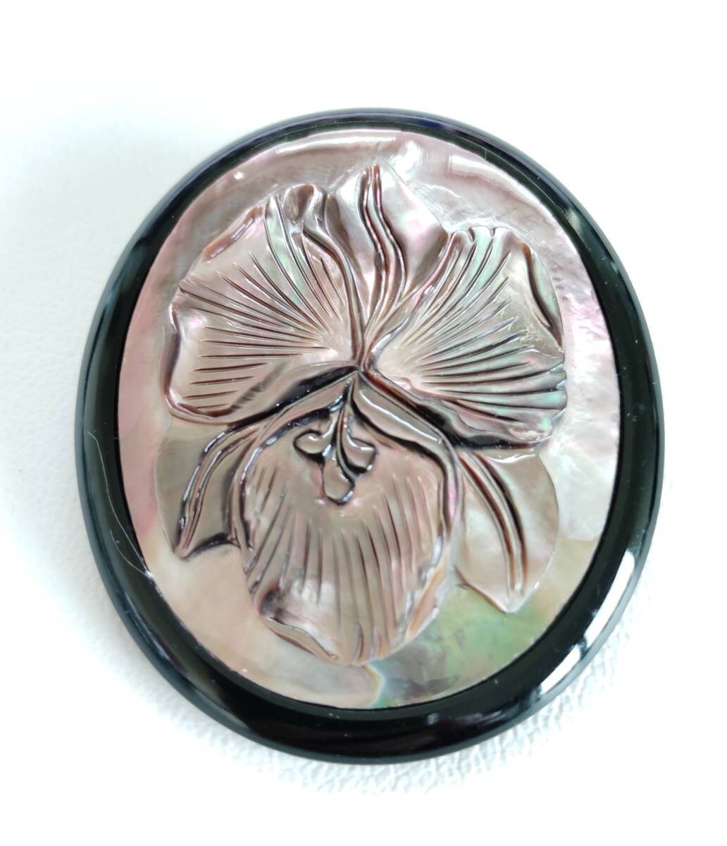 - シェルブローチ&ペンダント・両用・胡蝶蘭模様