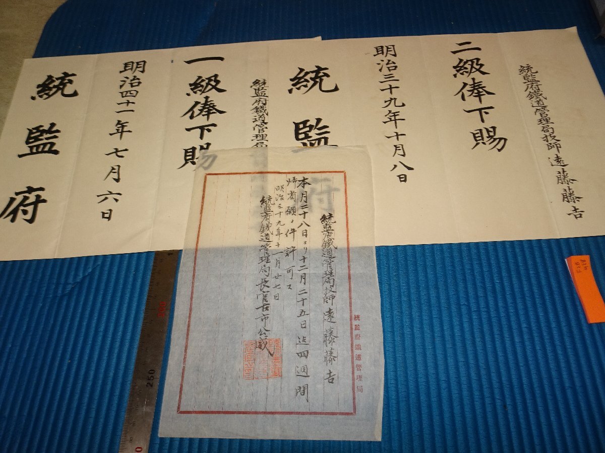 - Rarebookkyoto F2B-428 李朝朝鮮 統監府鉄道管理局 賜俸証二枚 帰省願書一枚 明治43 1910年頃 名人 名作 名品