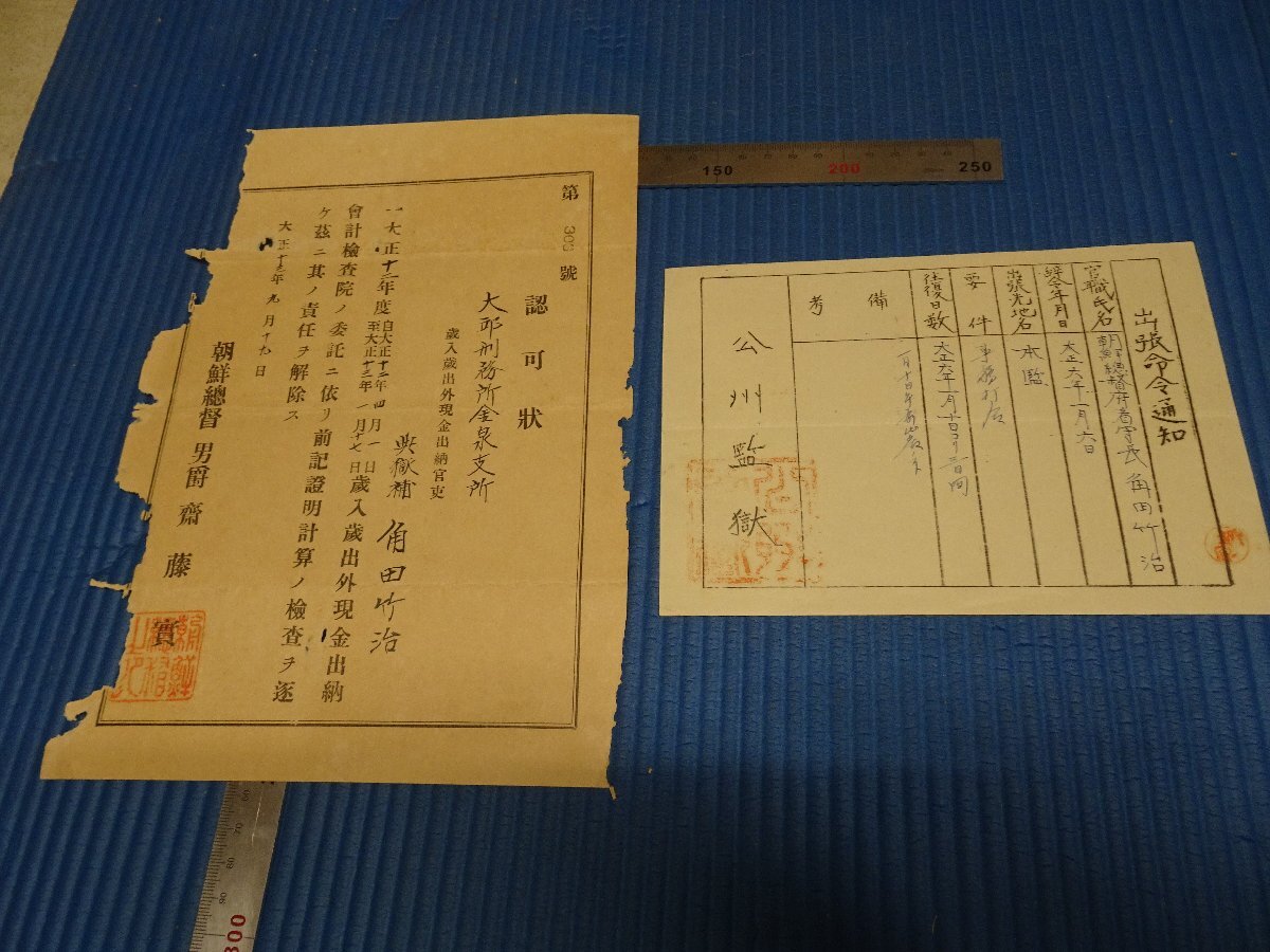 - Rarebookkyoto F2B-421 李朝朝鮮 朝鮮総督府 看守長 認可証と出張命令 1917年頃 名人 名作 名品