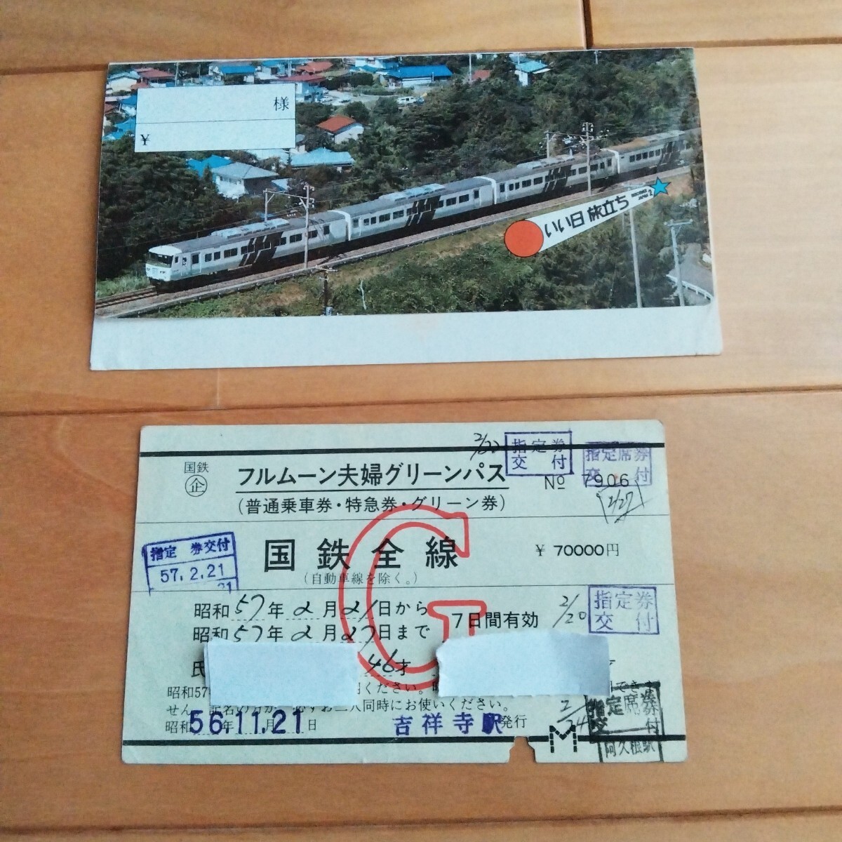 - フルムーン夫婦グリーンパス国鉄全線56年11月21日吉祥寺駅発行