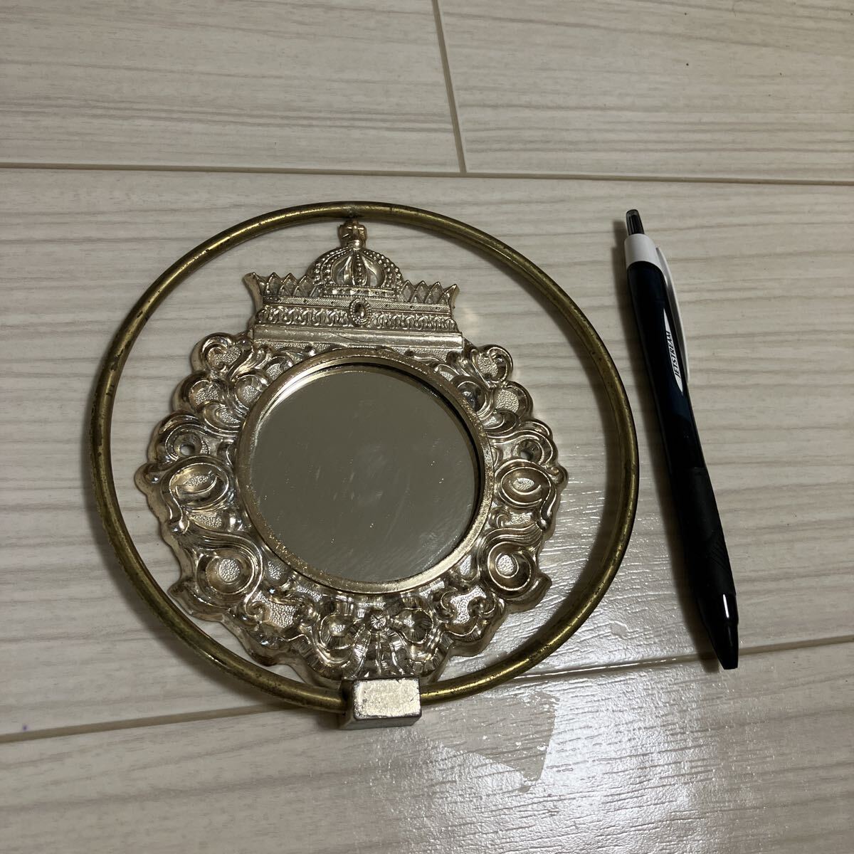 - アンティーク 鏡 スタンド 壁掛け ミラー ウォールミラー タオル掛け ブロンズ ゴールド 真鍮 インテリア 王冠