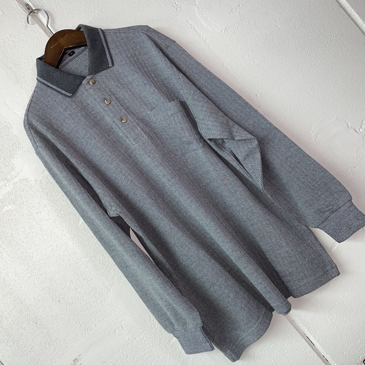 - サンプル品Lサイズメンズヘリンボン柄胸ポケット長袖ポロシャツグレー