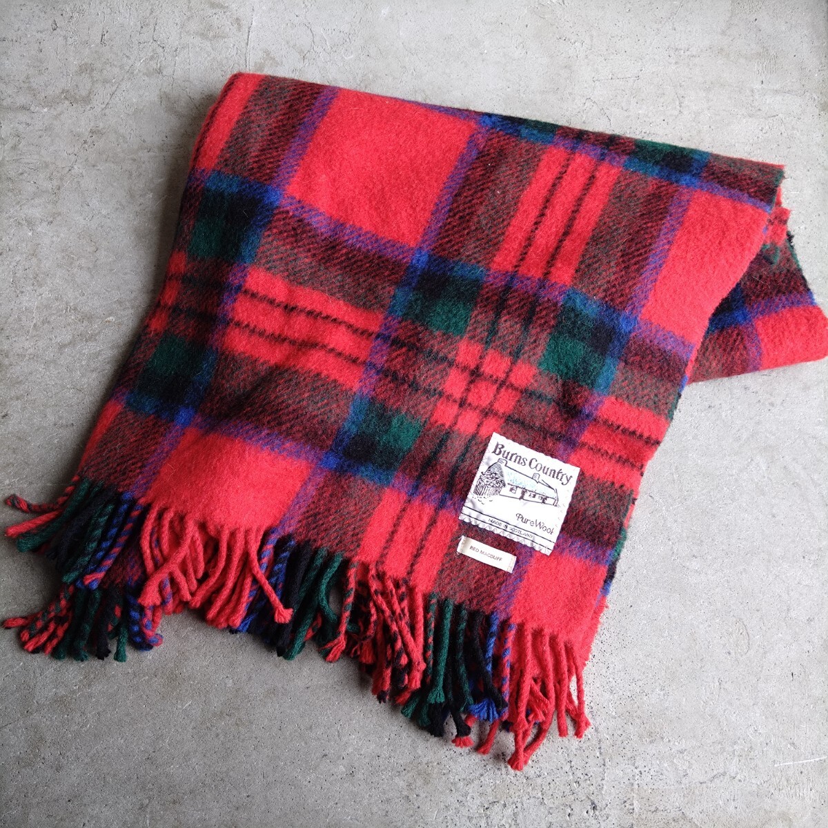 - スコットランド製 BurnsCountry マフラー ブランケット ウール チェック柄 レッド /N9050