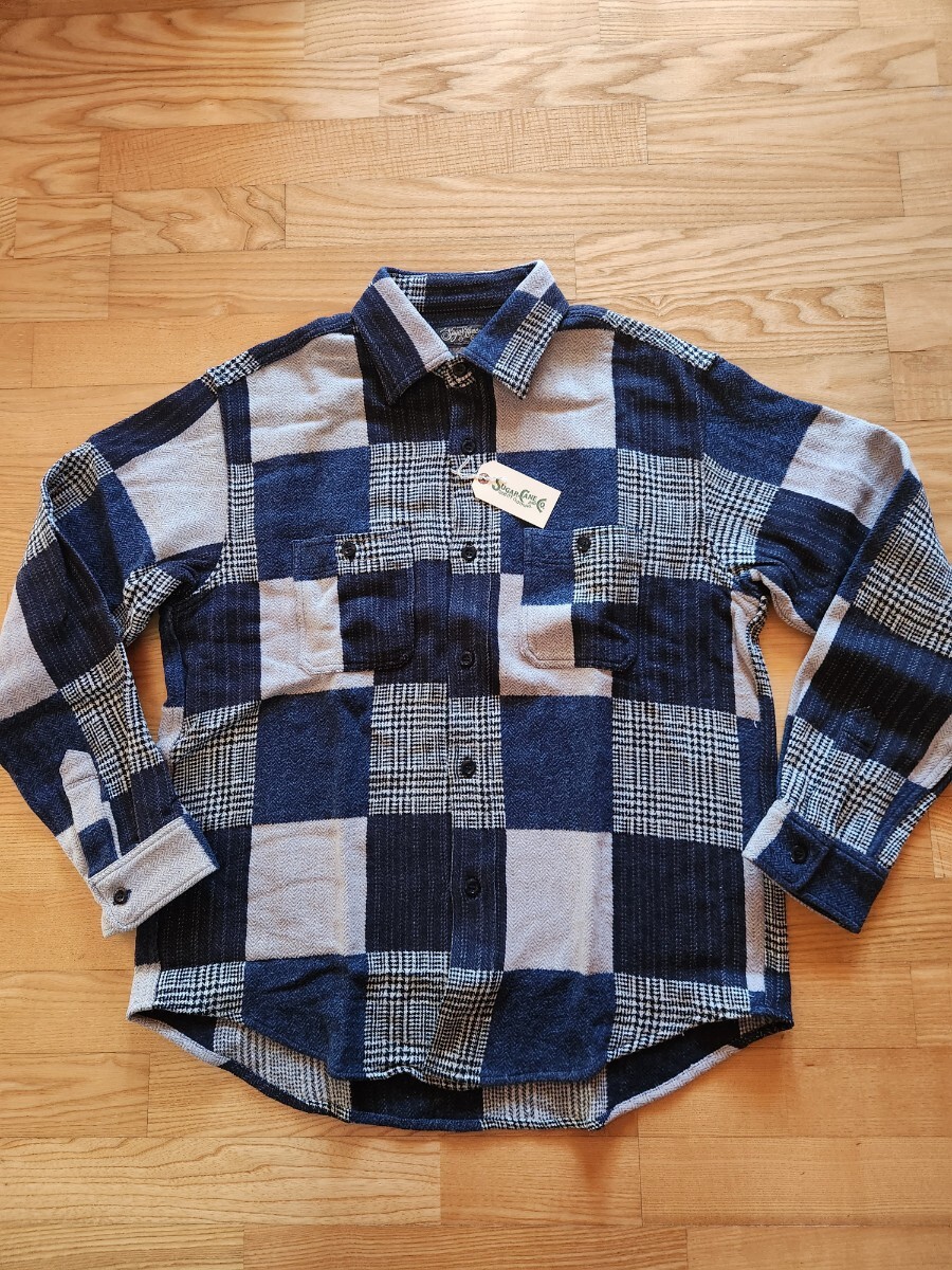 - 新作 送料込★東洋 SUGAR CANE シュガーケーン SC29589 PATCHWORK CHECK WORK SHIRT パッチワークシャツ オーバーサイズ ネイビー L