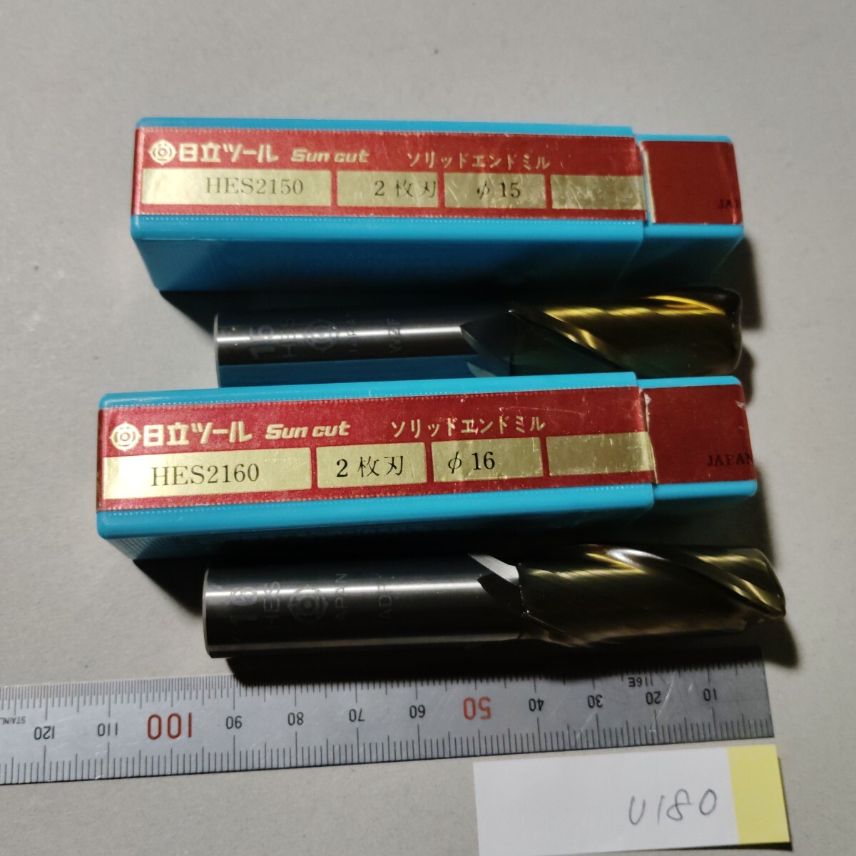 > u180 開封品 未使用品 超硬エンドミル Φ16 HES2160 2枚刃 ソリッドエンドミル 2本セット 日立ツール 鉄工 消耗品 切削工具