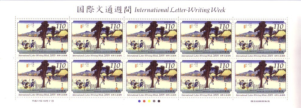 - 「国際文通週間2005 東海道五拾三次之内 水口」の記念切手です