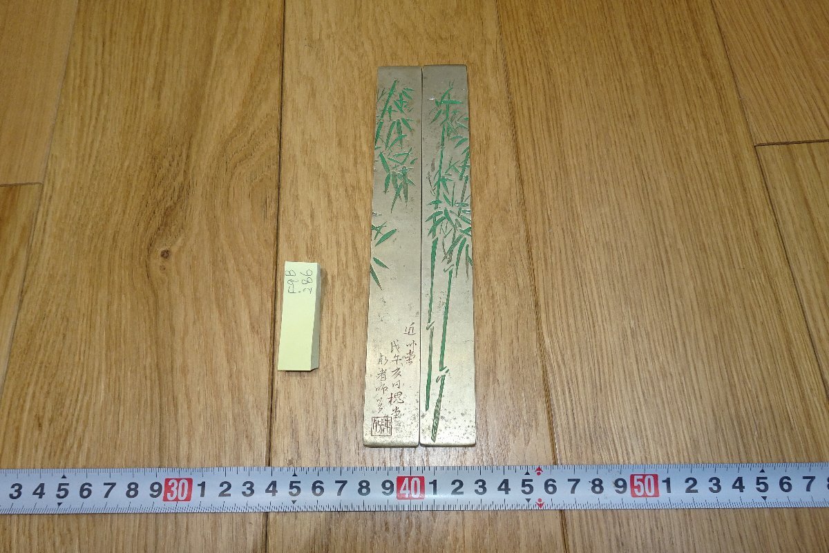 - rarebookkyoto 286 中国絵画・陳師曽・衡恪・青緑翠竹 白銅文鎮二本セット 510g 1918年頃作 京都古物