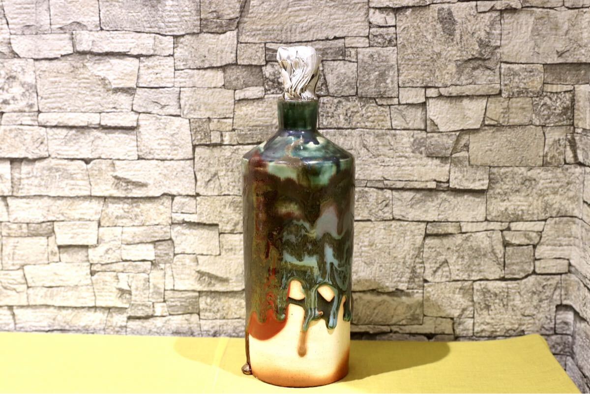 > GMIO201C○丹文窯 / Tanbungama ウォーターボトル 丹波立杭焼 一点物 ミャクミャク模様 花瓶 フラワーベース