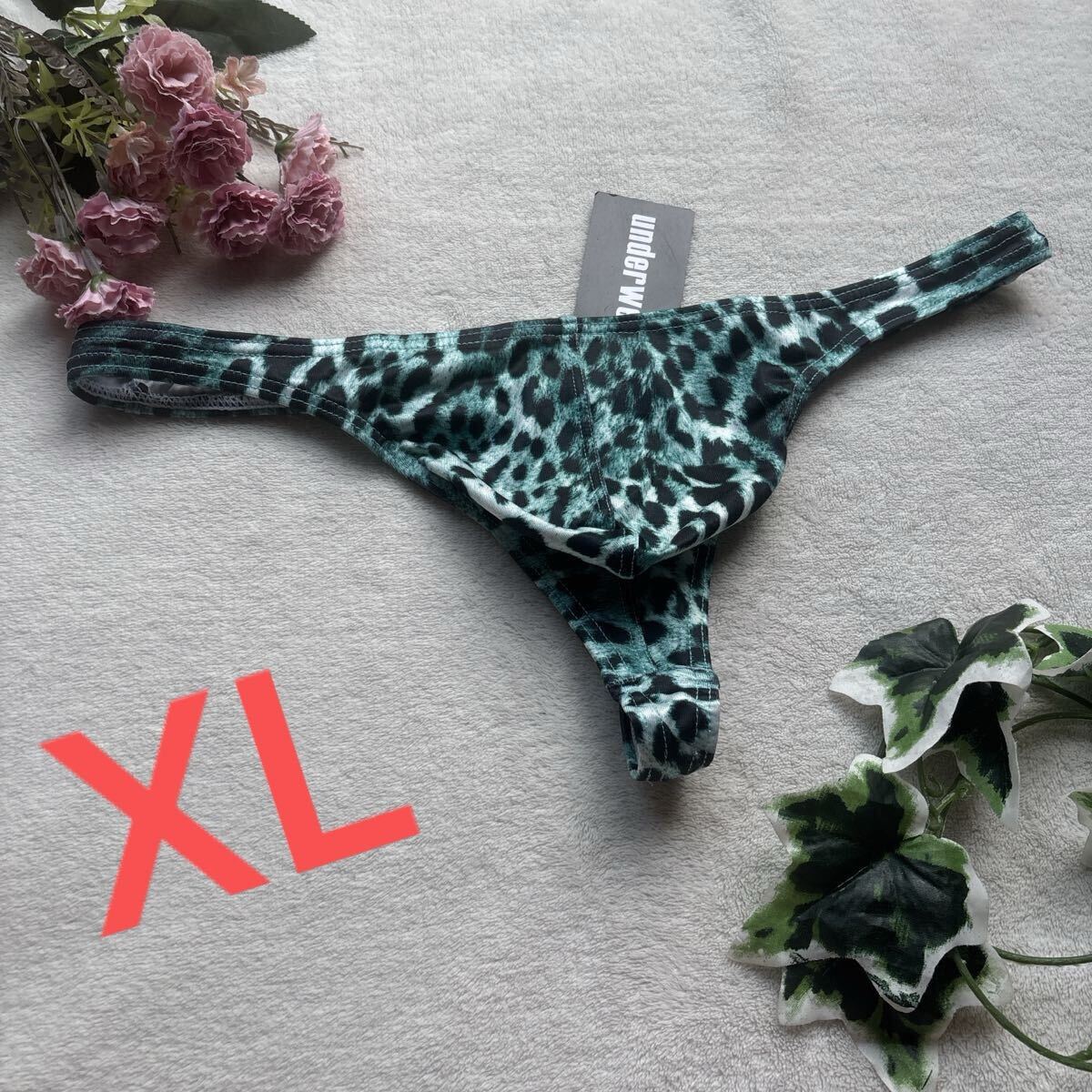 - 新品 メンズ XLサイズ 触り心地超いい グリーン 豹柄 アニマル ぴったり もっこり Tバック ビキニ ブリーフ パンツ ショーツ