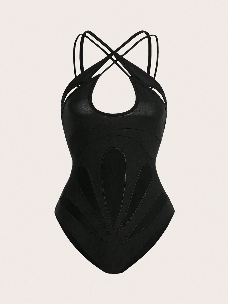 - ボディスーツ クロスストラップ 2 1 スリムフィット メッシュ素材 ボディースーツ