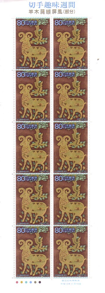- 「切手趣味週間2003 羊木臈纈屏風」の記念切手です