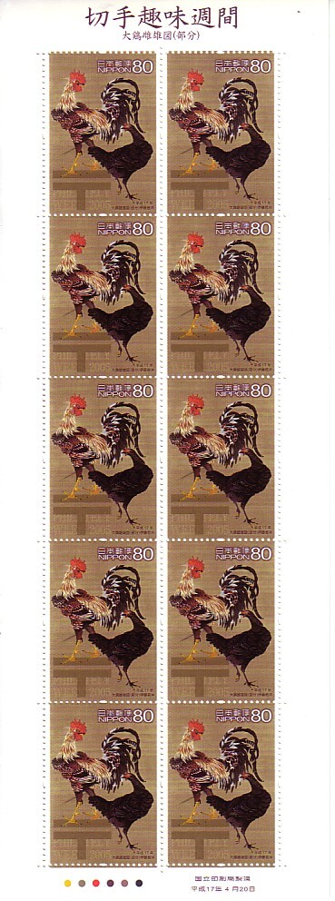 - 「切手趣味週間2005 大鶏雌雄図」の記念切手です