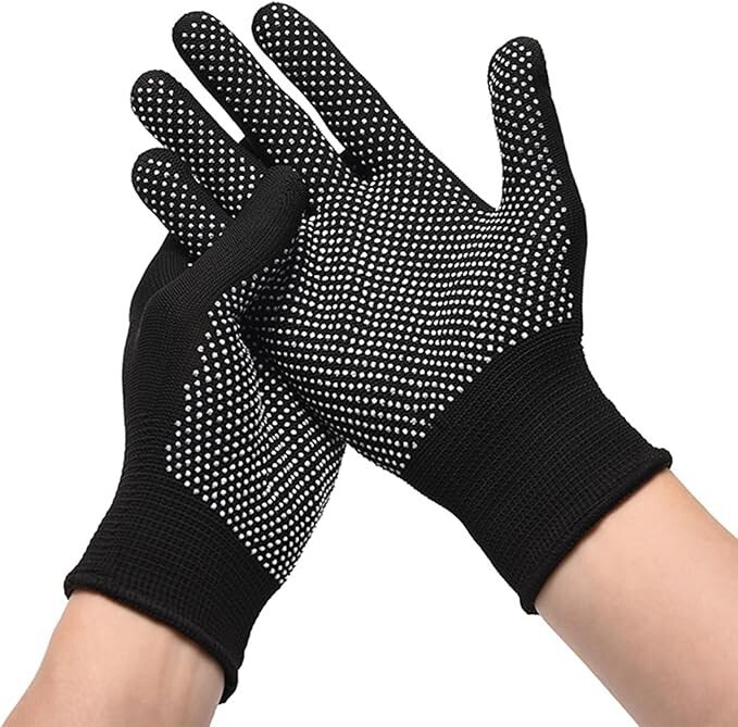 - 【5ペアセット】作業手袋 薄手 軍手 釣り手袋 滑り止め 手汗対策 通気性 吸汗速乾 軽作業 男女兼用(色:黒)