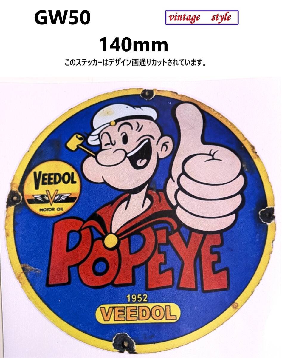 - GW50-3 特価 ヴィンテージスタイル VEEDOL OIL 1952 ポパイ オイル ガソリンステッカー ダメージ加工 レトロ ガレージ