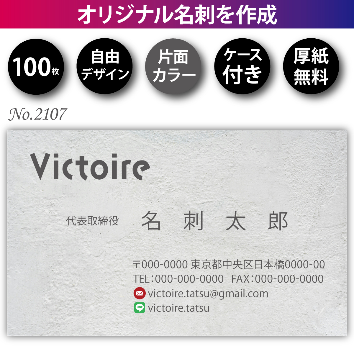- 名刺 名刺作成 名刺印刷 100枚 片面 フルカラー 紙ケース付 No.2207