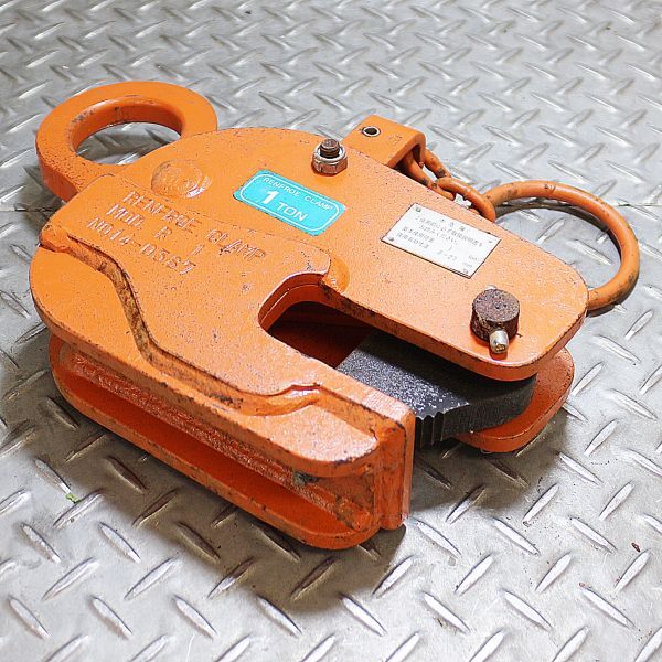 - 【新潟発】レンフロークランプ 1t 横吊クランプ 水平 吊り上げ 吊り下げ 鋼板 クランプ 横吊 建設 現場 工場 重量物 工具 中古 北陸