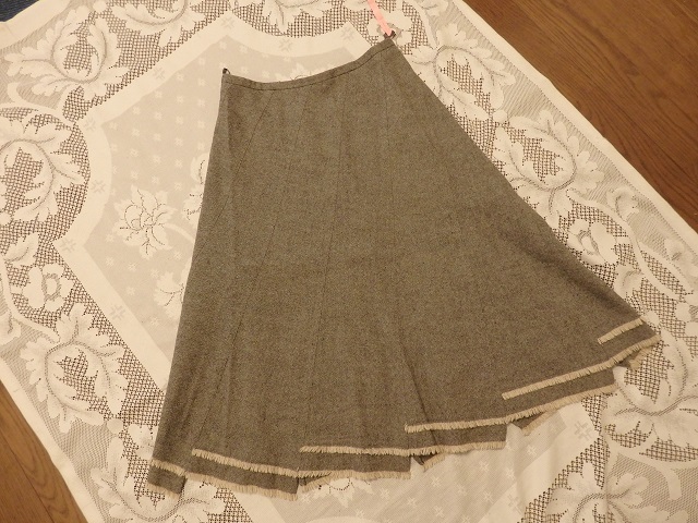 - 【綺麗】★K.T. キヨコタカセ カシミヤ混ツイード調 エスカルゴフリンジ付アシメスカート/9クリーニング済★