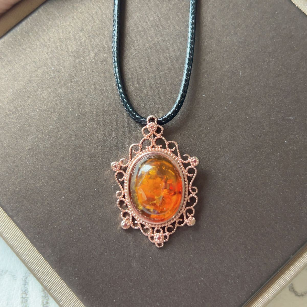 - 訳あり◇アンバー琥珀(花珀)◇ネックレス◇ペンダント◇パワーストーン◇天然石◇巾着袋付き◇プレゼントにも038P101214