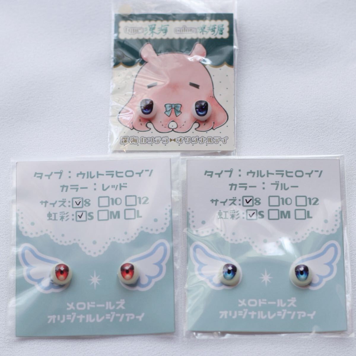 > ディーラー様製 レジンアイ 8mm 3個セット 赤 青 //ドールアイ オビツ OBヘッド parabox etc. レッド ブルー