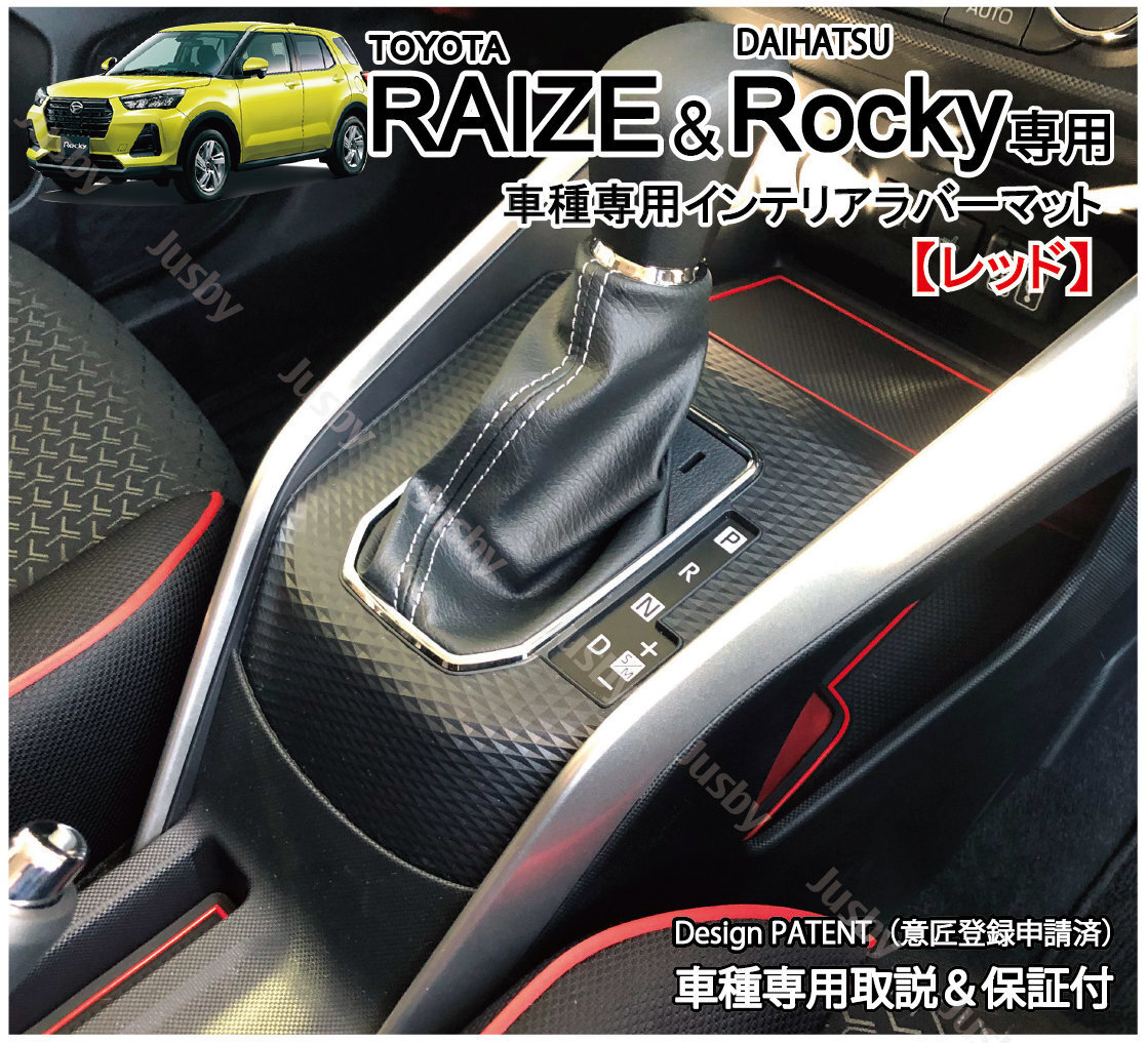> 【電動P無し】トヨタ ライズ ダイハツ ロッキー インテリア ラバーマット(赤/レッド) ドアポケットマット フロアマット ドレスアップ