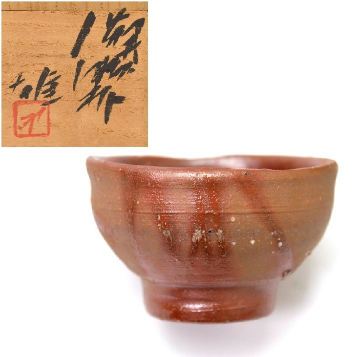 > 143 人間国宝 藤原雄 備前 酒盃 ● 酒器 盃 ぐい呑み 共箱 共布 備前焼 火襷 日本酒 和食 和食器