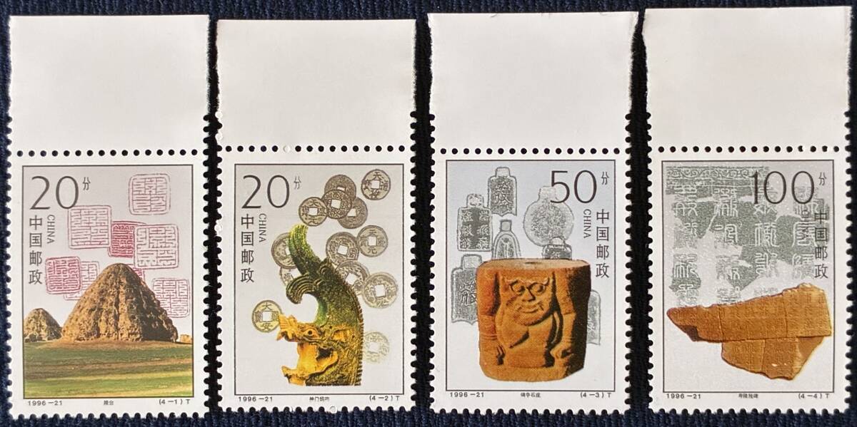 - 新中国切手ー未使用 1996年 1996-21T 西夏陵 4種完 耳付き