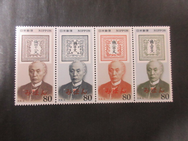 - 【みほん字入り】記1480-1483 郵便切手の歩みシリーズ 第1集「前島密と竜切手」 (4種完)