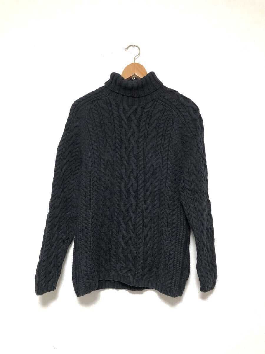 - LANDS’ END タートルネック コットン ケーブル ニット M ランズエンド ネイビー