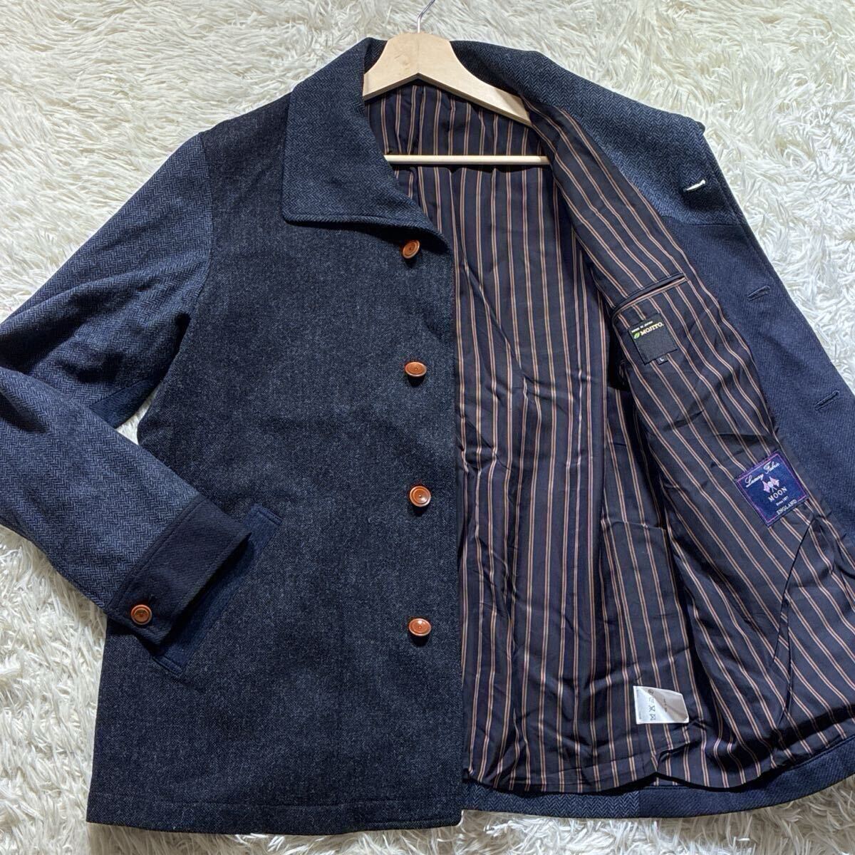 > 極美品◎MOJITO × MOON モヒート クレイジーパターン ツイード ジャケット スタンドカラー 紺 ネイビー Lサイズ 2way メンズ 紳士服