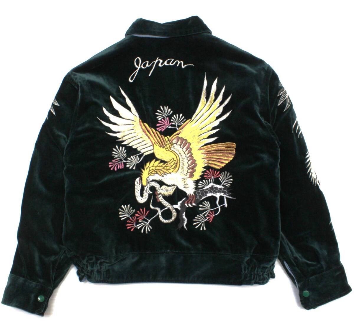 > YK82東洋Lテーラー東洋 別珍×コットン 襟付き リバーシブル スカジャン USエアフォース トラ リュウ タカ 白ヘビ TT10798 別珍色グリーン