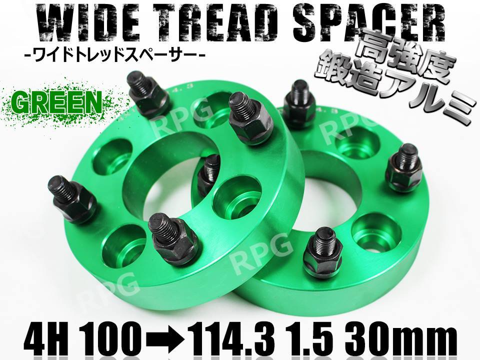 - 4H100114.3変換 ワイドトレッドスペーサー 2枚組 1.5 30mm 緑