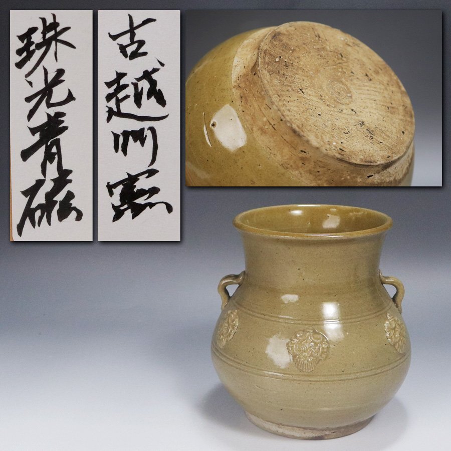 - 《源》【即決・送料無料】《宋時代》古越州窯 珠光青磁 花紋 二耳瓶/箱付