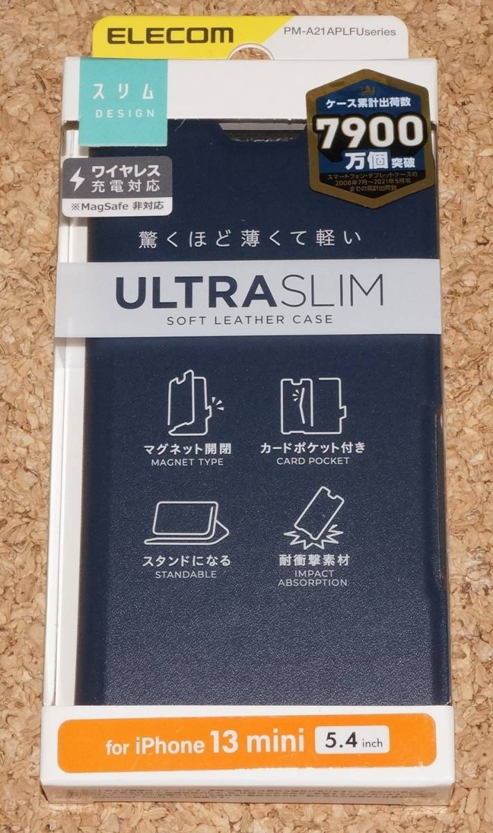 > ★新品★ELECOM iPhone13mini レザーケース Ultra Slim ネイビー