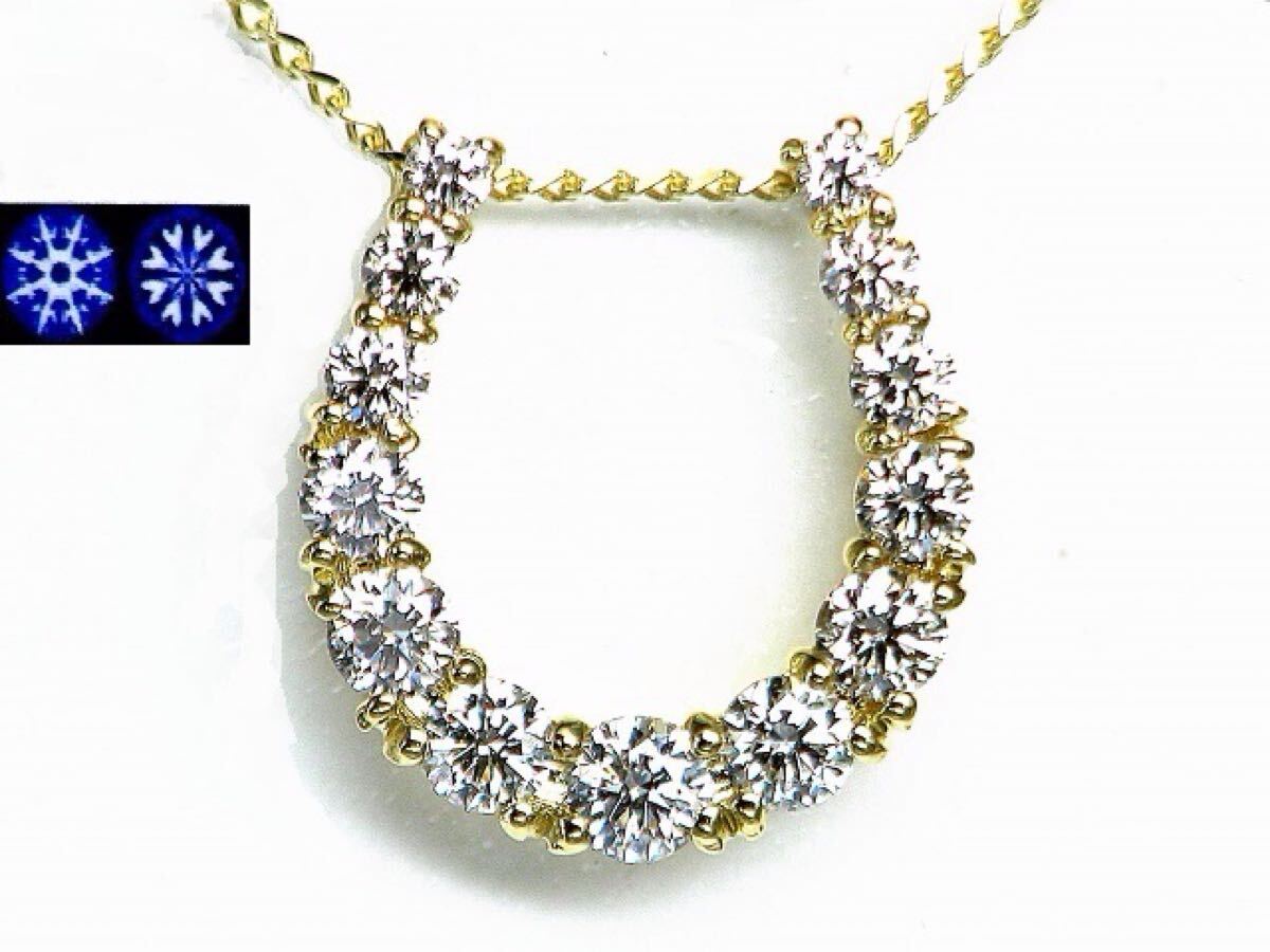 > 【宝石屋本舗】0.30ct ハート&キューピッド 天然ダイヤモンド K18 馬蹄型ネックレス(宝石鑑別カード付)