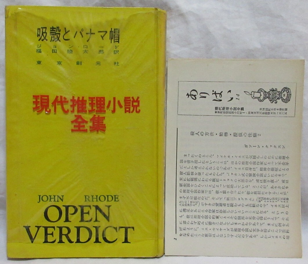 > 【初版/月報付】■現代推理小説全集 第6巻■ジョン・ロード『吸殻とパナマ帽』■東京創元社 昭和33年発行