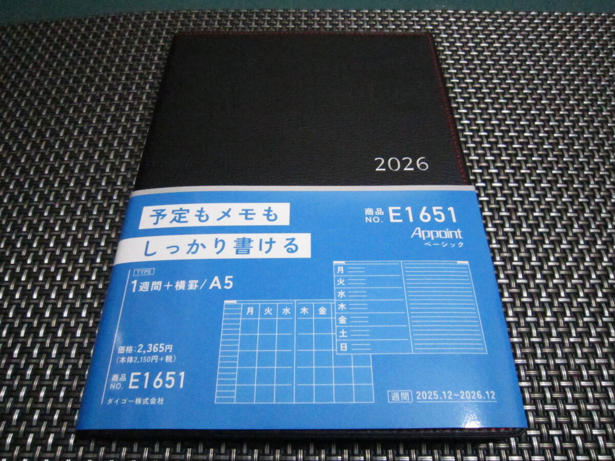 > ☆最新版 新品未使用 ダイゴー アポイント 手帳 2026年1月始まり アポイント Appoint E1651 1週間+横罫 A5 ブラック☆