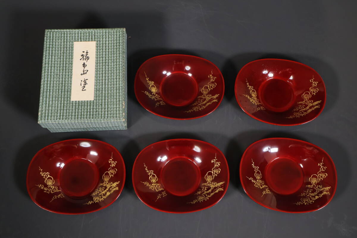 - 【和】(A3568) 時代古作 輪島塗 未使用 輪島塗茶托 木地 紙箱有 茶道具 煎茶
